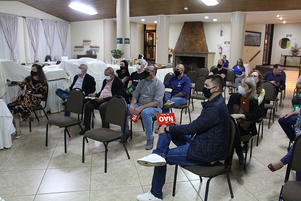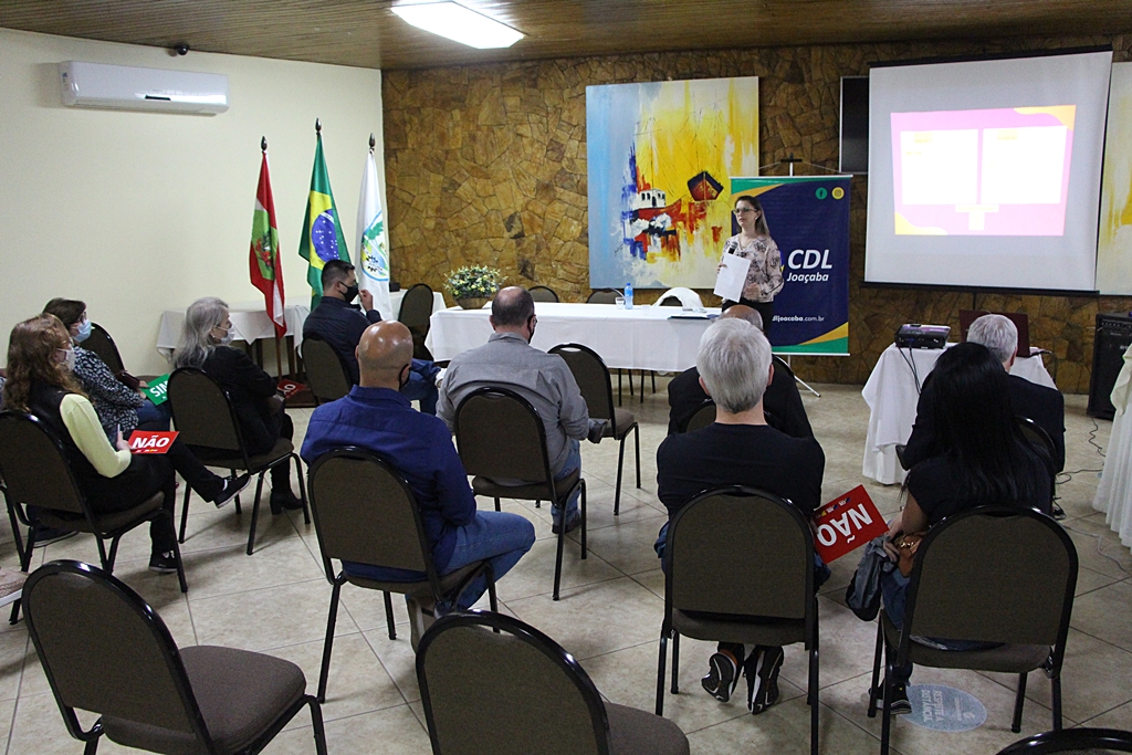 A Câmara de Dirigentes Lojistas de Joaçaba (CDL) realizou na noite desta quinta-feira (30) uma importante assembleia geral extraordinária no restaurante do Hotel Jaraguá. Na pauta a promoção ‘Liquida Joaçaba”, os dias D para 2022 e o horário especial do comércio, em forma de sugestão, para o mês de dezembro. A assembleia foi conduzida pela presidente Alessandra Favretto.