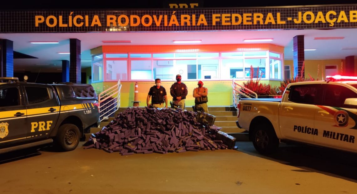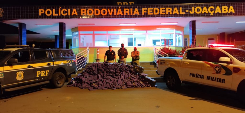 m ação conjunta de combate ao crime organizado desencadeada no início da noite desta quinta-feira, dia 30, a Polícia Rodoviária Federal e a Polícia Militar Rodoviária, lograram êxito na apreensão de uma camioneta MITSUBISHI/TRITON carregada com 1.130,70 kg de maconha.