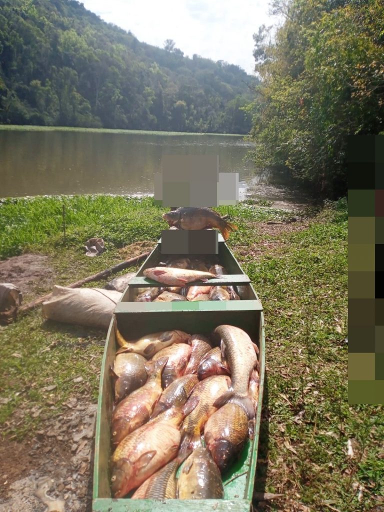 A Polícia Militar Ambiental, com sede em Herval d’Oeste, tomou conhecimento do caso ainda na semana passada e iniciou uma investigação. O sub-tenente Nereu Lins disse que foram realizadas diligências e os pescadores identificados. A espécie pescada, Carpa, é exótica, criada em cativeiro e não nativa do Rio do Peixe, não existindo limite em lei quanto ao quantitativo que pode ser retirado do rio. “Se fossem peixes nativos, e dependendo da época, ai sim teria um controle” explicou ele.