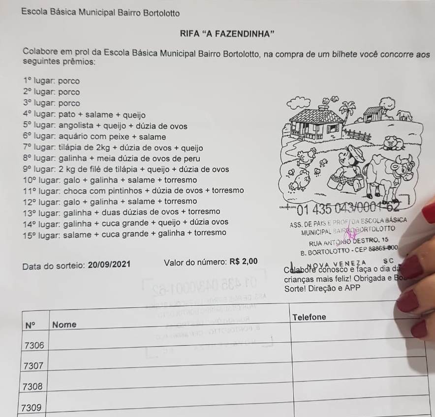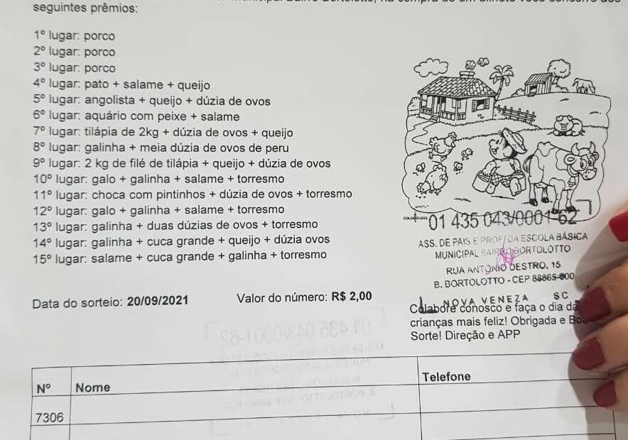 “Senhor presidente, eu peço licença para divulgar a ‘Rifa da Fazendinha’ da escola do Bairro Bortolotto, e vocês conhecem a gestora da escola, então ela fez questão de que fosse falado e lido a premiação”, disse, começando a ler a lista.