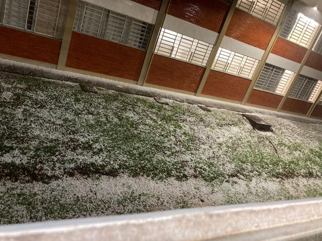 Temporal de gelo atinge Erechim na noite desta quinta-feira Compartilhe Um forte temporal atingiu alguns bairros da cidade de Erechim na noite desta quinta-feira. Ruas chegaram ficar cobertas por gelo. Chuva e muito granizo.