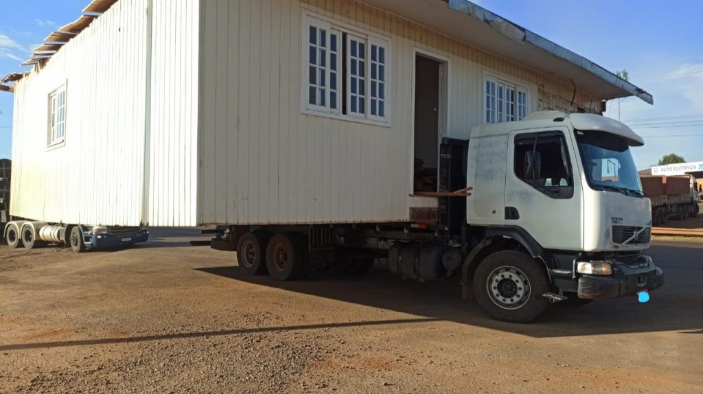 O motorista de um caminhão Volvo, com placas de Faxinal dos Guedes, foi autuado após ser flagrado transportando uma casa de madeira, na manhã desta terça-feira, dia 23, em Xanxerê.