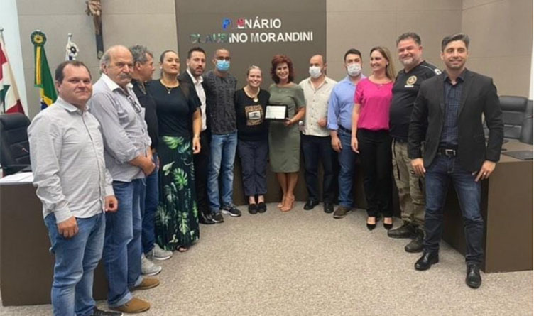 A trajetória do curso de Educação Física da Unoesc Joaçaba, que em 2021 completou 20 anos, foi homenageada na Câmara de Vereadores de Joaçaba por meio da entrega de uma moção de aplauso, indicada pelo vereador Dihego Joe Müller. A entrega aconteceu no dia 20 de dezembro e teve a participação da coordenadora do curso, professora Elisabeth Baretta e dos professores Leoberto Grigollo e Renan Souza.