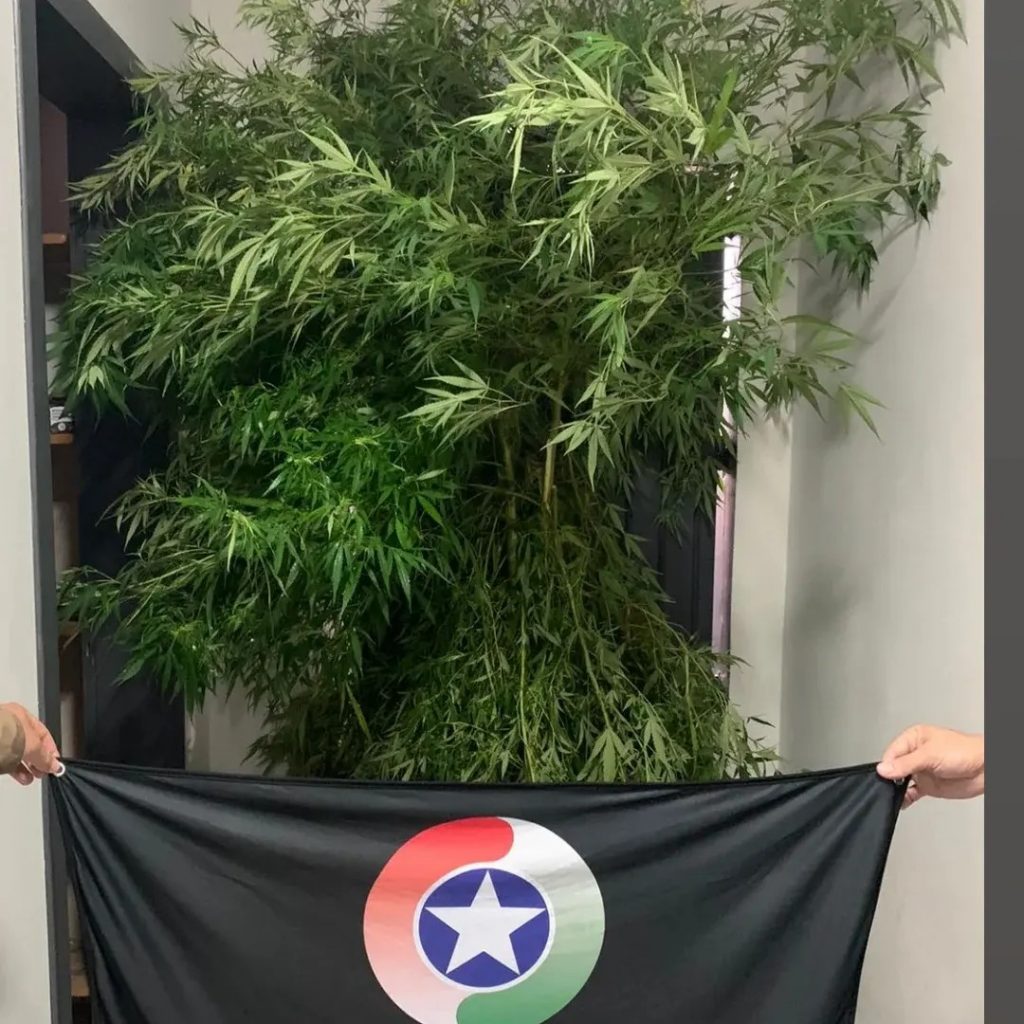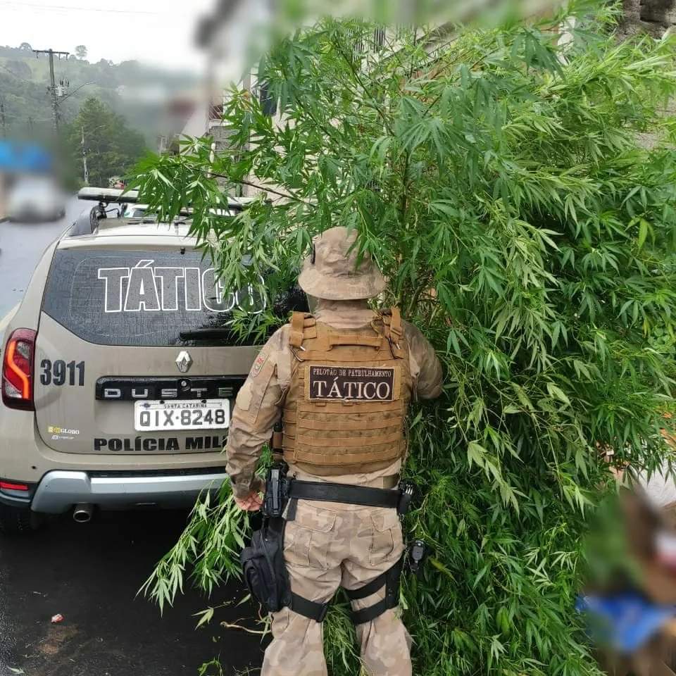 Entretanto, no local da prisão os policiais perceberam atrás da casa dois pés de planta semelhante a maconha com aproximadamente 2 metros de altura, cultivadas no meio de um pneu.