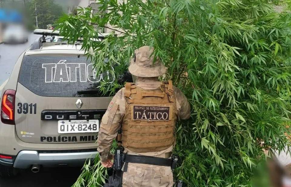 Dois pés de maconha são apreendidos pela PM em Herval d´Oeste