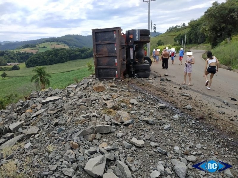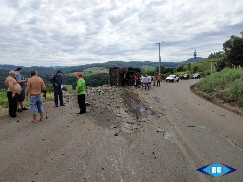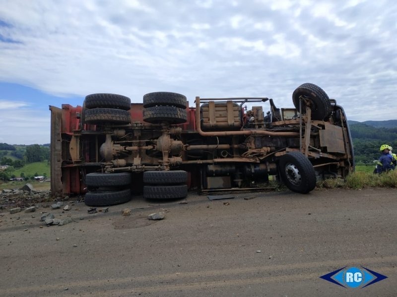 O condutor de um caminhão caçamba morreu na manhã deste sábado (15) após tombar o veículo no Distrito de Barra do Leão, em Campos Novos. O acidente, que ocorreu por volta das 9h40min próximo à entrada para a antiga estação ferroviária, também deixou uma pessoa ferida.
