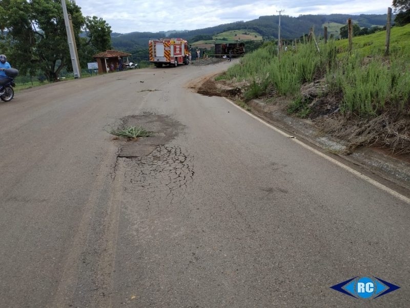 O corpo foi encontrado pelos Bombeiros debaixo do Ford/Cargo com placas de Capinzal, que estava carregado com “lascão” de pedras. O carona foi socorrido e encaminhado ao Hospital Nossa Senhora das Dores.