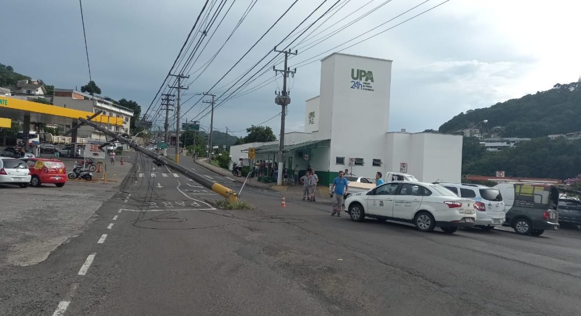 Funcionários da Celesc estão fazendo a troca do poste, para restabelecer a energia em todas as casas que foram atingidas. Também estiveram no local policiais militares e do Corpo de Bombeiros.