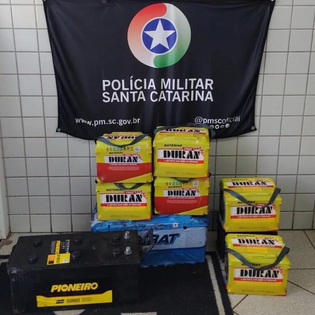 Com as informações iniciais, buscas foram feitas e mobilizadas outras guarnições para prestar o atendimento. Em uma ação rápida, os policiais identificaram os autores de um furto de baterias automotivas de um caminhão que estava estacionado em Herval d’Oeste. O comprador dos produtos também foi identificado. Em contato com a empresa proprietária das baterias automotivas, por intermédio do motorista do caminhão, seria realizado um levantamento dos produtos furtados, pois, não havia sido registrado o fato.