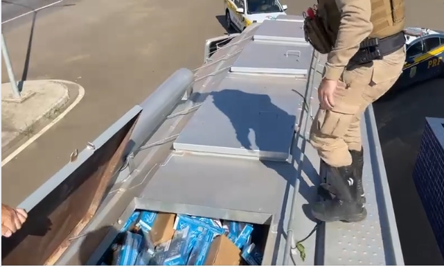 PRF apreende 200 mil maços de cigarros escondidos em caminhão em Capinzal