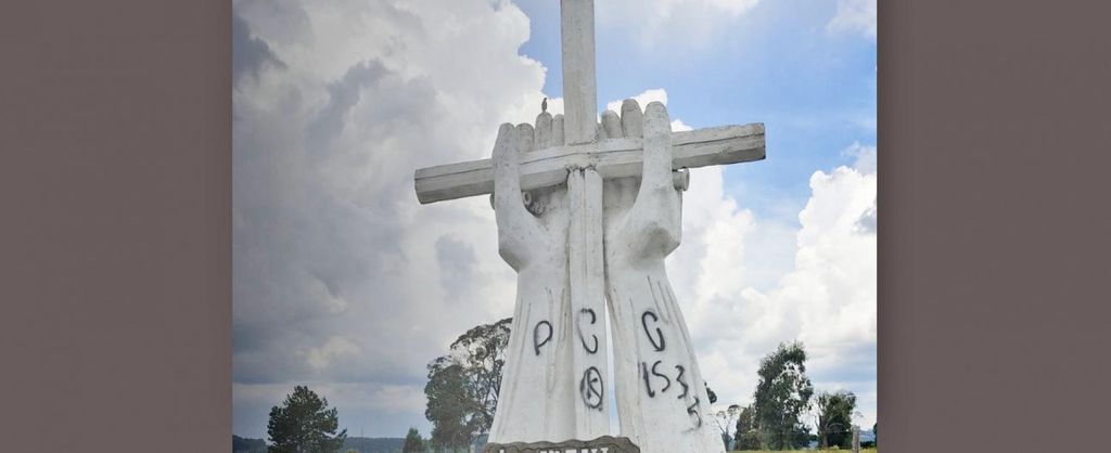 O monumento “Mãos de Cimento” que fica em Irani e é um dos símbolos da Guerra do Contestado, foi alvo de vândalos nos últimos dias. Siglas de facções criminosas foram pichadas na estrutura.