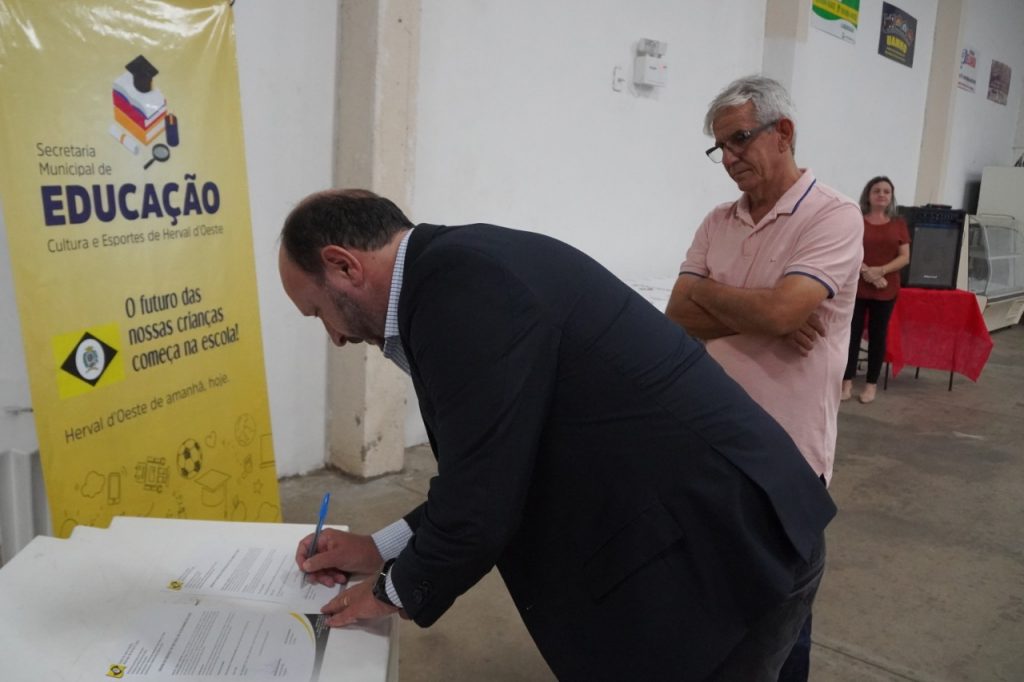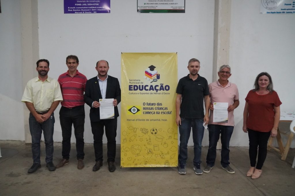 Na noite da quinta-feira, 10 de março, foi assinada a Ordem de Serviço no Bairro Jardim José Rupp em Herval d´Oeste, para a construção de uma nova creche no município com a presença de lideranças do bairro, do prefeito Mauro Martini, do vice Jair da Rosa, do sócio administrador da empresa vencedora da licitação Construções Herval, Jucenei Andrade, de alguns vereadores, da secretária de Educação, Cultura e Esportes, Silvana Lazzarini Bulla; do secretário de Planejamento e Coordenação, Odair Trevisol e do secretário de Habitação Patrick Giusti.