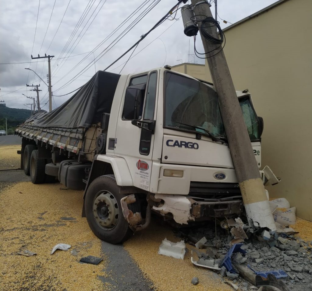 A Celesc também foi acionada devido ao caminhão estar energizado por conta da colisão no poste. A Polícia Militar (PM) esteve no local e ficou responsável pela ocorrência após limpeza da pista.