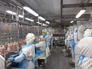 “Um frigorífico é um ambiente frio, fechado, com baixa taxa de renovação do ar, onde as pessoas trabalham muito próximas umas das outras”, descreve Heiler Natali, procurador do Ministério Público do Trabalho (MPT) responsável pela ação que resultou na condenação da Seara. “É claro que essas condições favorecem enormemente o contágio de qualquer síndrome respiratória”, acrescenta. No curso do processo, uma perícia foi realizada em novembro de 2020. O relatório técnico afirma que no setor de evisceração, por exemplo, “os empregados trabalhavam tocando uns aos outros o tempo todo, pois o espaço físico é bastante limitado”.
