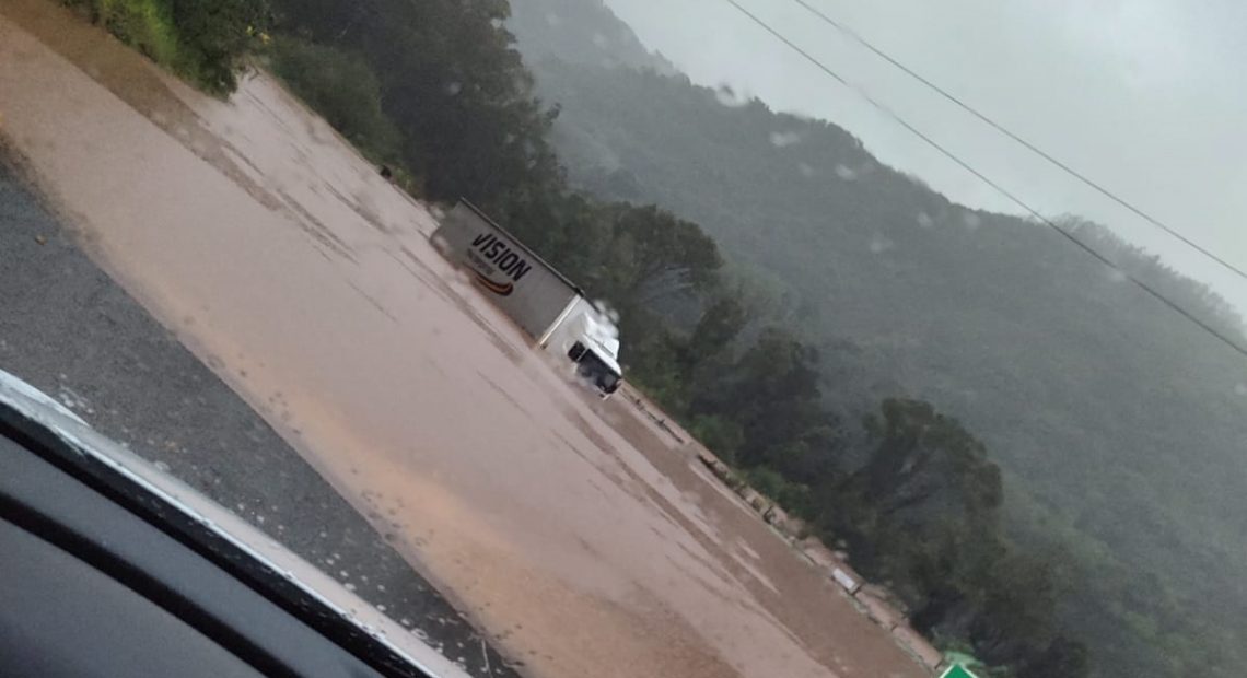 Ponto de alagamento entre LUZERNA e IBICARÉ tem lâmina de quase dois metros de água. Vídeo mostra carreta inundada que tentava fazer a travessia. Veja também como está a situação no município de Ibicaré.