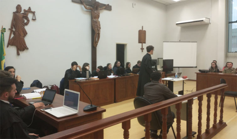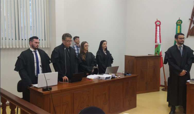No dia 26 de maio ocorreu, nas dependências do Fórum da Comarca de Joaçaba, sala do Tribunal do Júri, um “Júri Simulado” como atividade interdisciplinar de Estágio de Prática Jurídica. Estiveram envolvidos aproximadamente 90 acadêmicos do curso de Direito da Unoesc Joaçaba, que estão cursando o Estágio 2 e duas turmas do Estágio 3.