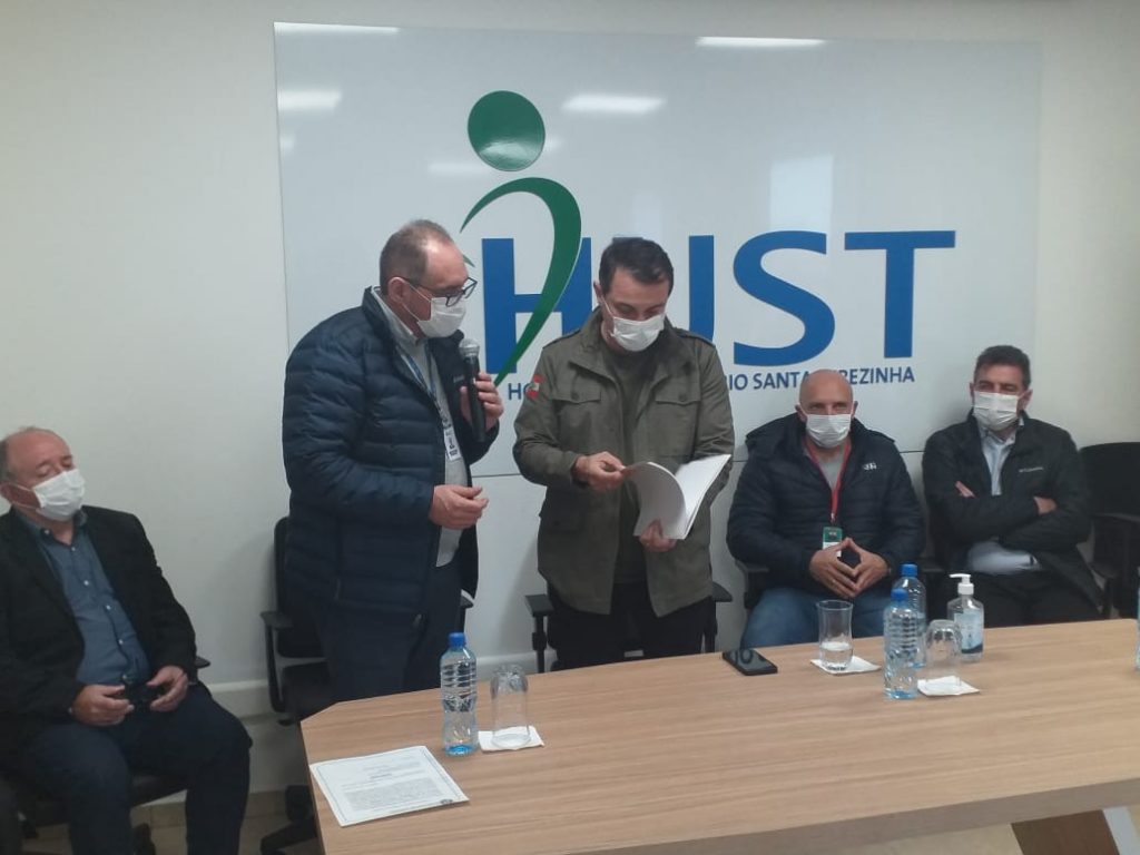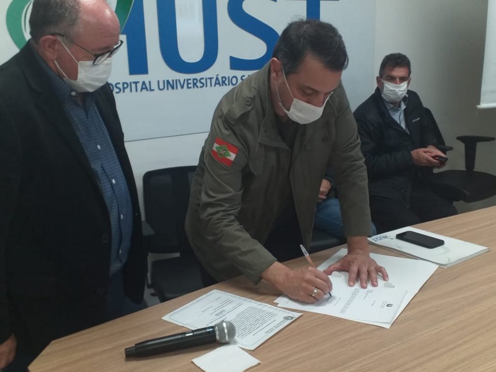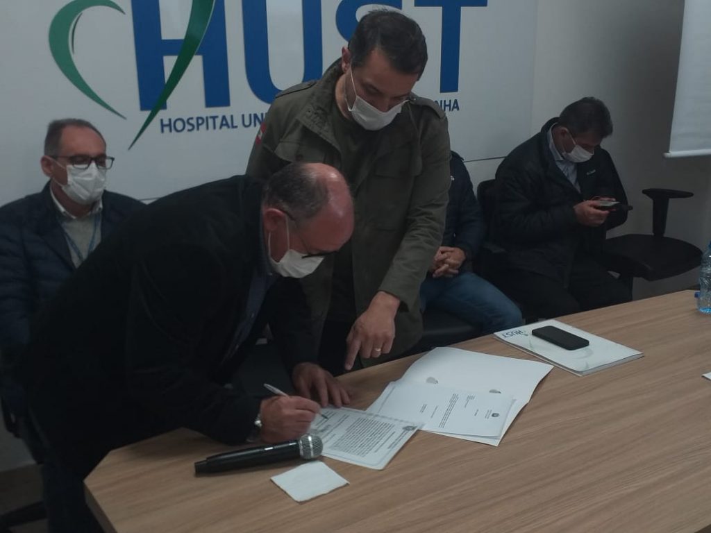 O Governador do Estado, Cralos Moisés, cumpriu agenda em Joaçaba na tarde deste quinta-feira. Durante visita e reunião no Hospital Universitário Santa Teresinha (HUST), Carlos Moisés ouviu as demandas da direção do HUST e assinou a liberação de repasse de R$ 2 milhões e 600 mil para elaboração do projeto “Anel Viário” ligando Joaçaba a Luzerna. Na oportunidade foi efetuado repasse da primeira parcela do Plano 1000 no valor de R$ 4 milhões. Com este valor garantido, a administração pretende dar ainda esta semana a ordem de serviço para início da obra de pavimentação da BR-282 até a comunidade de Santa Clara. “Já estamos com a licitação e a ordem de serviço e amanhã vamos dar encaminhamento em evento lá em Santa Clara” destacou o prefeito. São cerca de 2,5km.