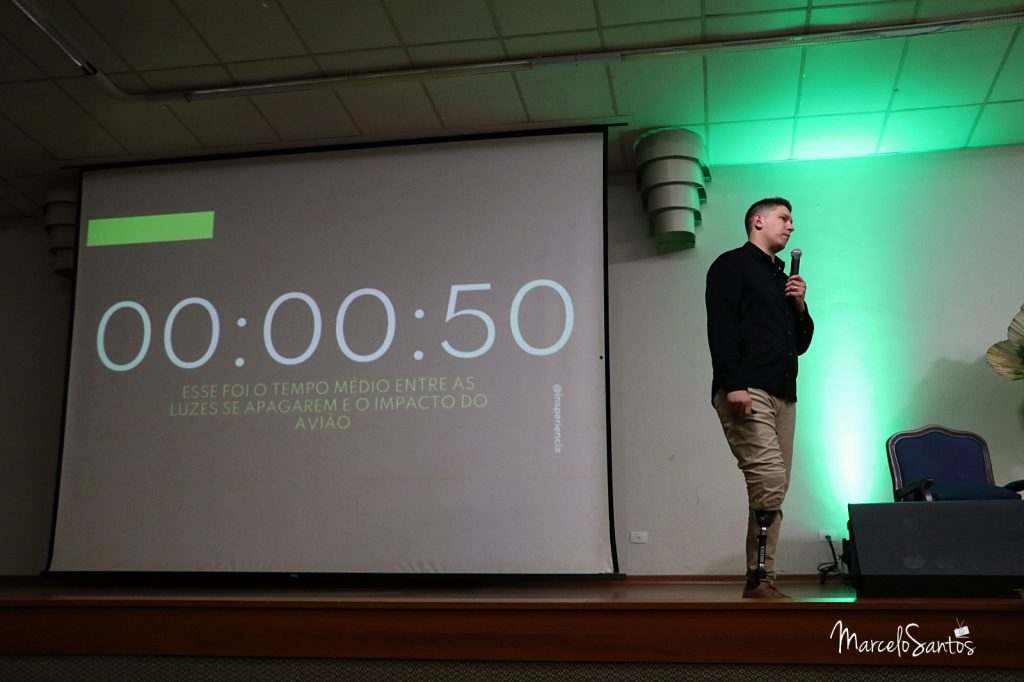 O ilustre palestrante foi um dos sobreviventes do trágico acidente com a queda do avião da Chapecoense em 2016. Sua vida mudou drasticamente em apenas 50 segundos, entre o apagar das luzes, e o impacto com o solo. O avião que transportava a delegação caiu a caminho do primeiro jogo da final da Copa Sul-Americana, na Colômbia. Ele foi impedido de voltar a jogar devido à amputação de parte de sua perna direita em razão do acidente.