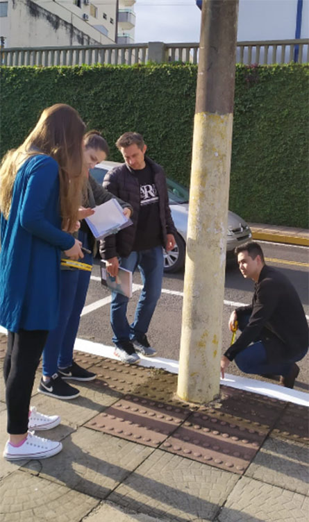 Na praça Engenheiro Daniel Olímpio da Rocha, os acadêmicos buscaram compreender como ela foi constituída e está sendo aproveitada atualmente. Pesquisaram sobre a origem e as condições atuais analisando fotos, a planta e fontes bibliográficas. Na área central da cidade, identificaram as irregularidades dos mobiliários e fizeram análise das calçadas e das escadarias. Após os estudos, para cada local, elencaram melhorias como: manutenção e limpeza frequentes, adequação da acessibilidade, manutenção das placas de sinalização de trânsito e dos postes de iluminação, implantação de parklets, bicicletários, lixeiras e bancos, novas pinturas em meios-fios e ajuste e padronização do tamanho das rampas de acesso e faixas táteis.