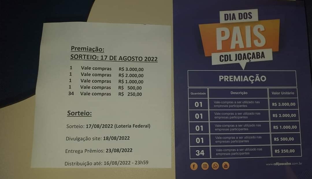 CDL/Joaçaba divulga ganhadores da promoção do Dia dos Pais