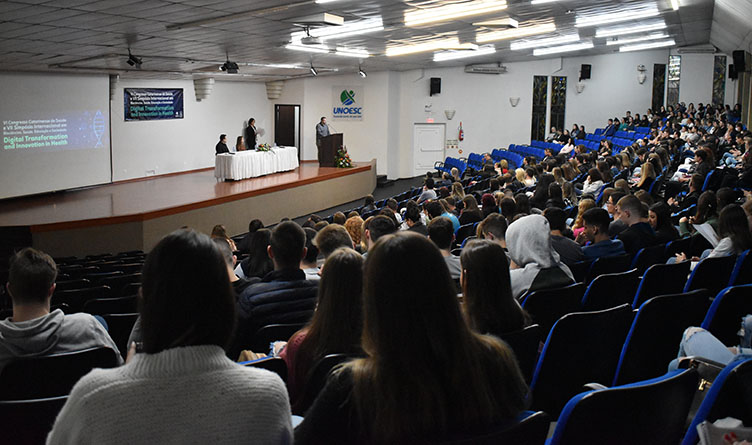 A forma de realizar o cuidado em saúde tem sido modificada pelas análises de dados, digitalização dos processos, inteligência artificial e outras formas de inovação. Diante disso, entre os dias 25 e 27 de agosto, aconteceram, na Unoesc Joaçaba e no Polo Inovale, as atividades do “6º Congresso Catarinense de Saúde” e do “7º Simpósio Internacional em Biociências, Saúde, Educação e Sociedade”, com foco na transformação digital e na inovação na área da saúde.