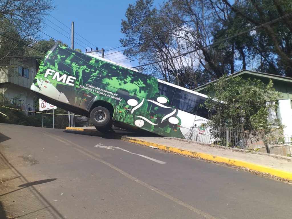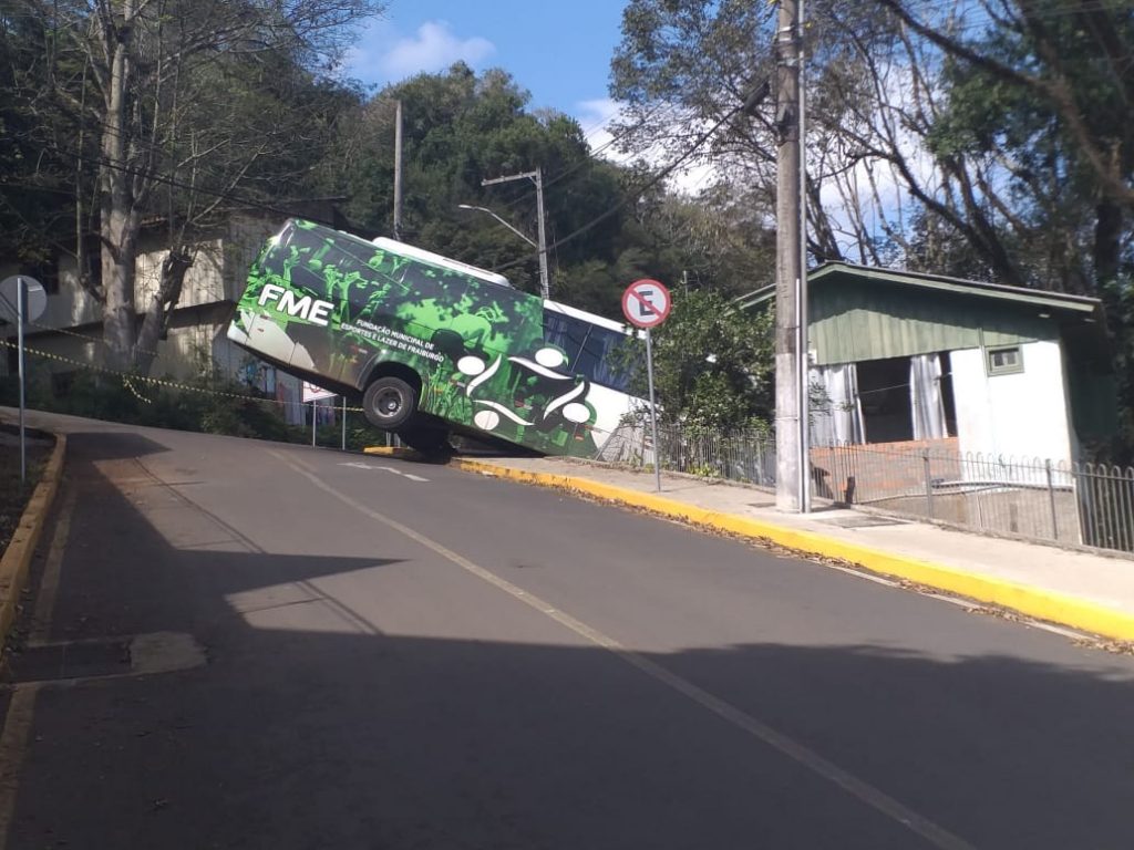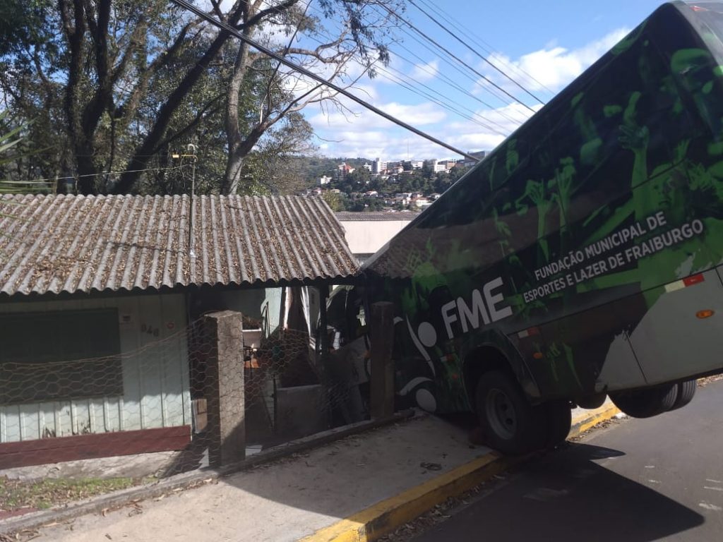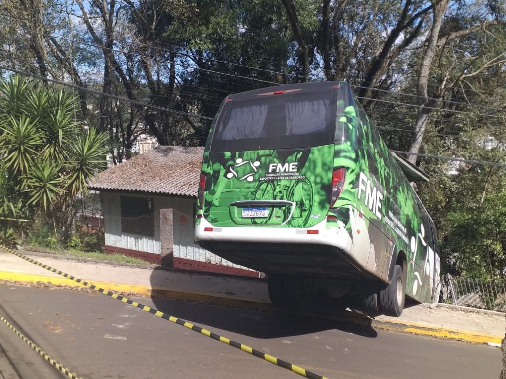 Por muito pouco não se registra uma tragédia em Joaçaba. Um micro-ônibus  da Fundação Municipal de Esportes do município de Fraiburgo ficou literalmente pendurado na rua Angelina Lima, travessa da Sete de Setembro com a Getúlio Vargas. O coletivo, com vários passageiros dentro, descia pela Sete de Setembro e ao tentar fazer a conversão para entrar na rua Angelina Lima, avançou por cima da calçada, parando bem em frente a uma residência de madeira. Por muito pouco ele não atingiu a casa. Bombeiros foram acionados e retiraram os passageiros quebrando as janelas. Ninguém se feriu.