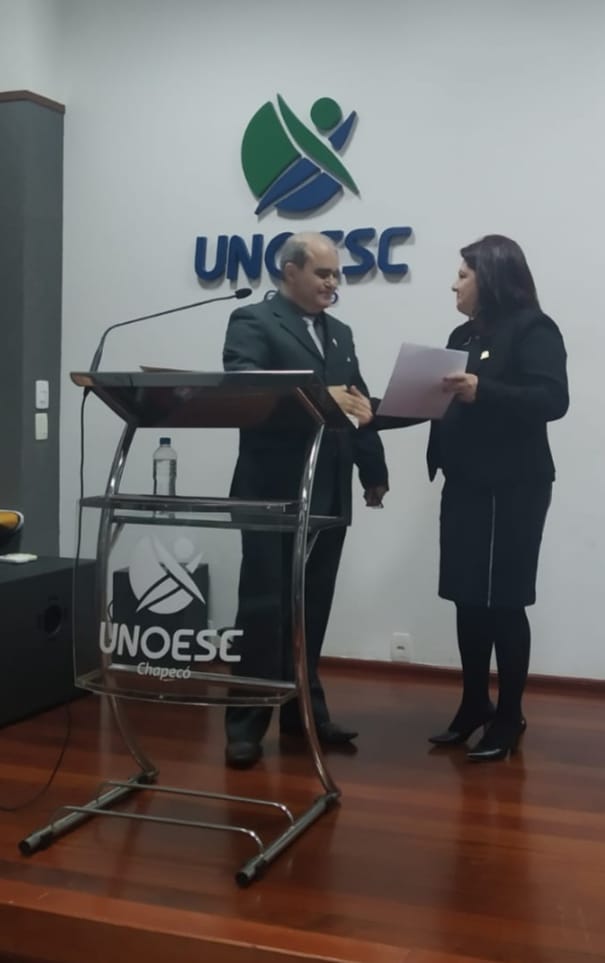Aristides Cimadon, de Joaçaba, reitor da Universidade do Oeste de Santa Catarina – Unoesc, amadrinhado pela própria presidente, Eliane Hüning.