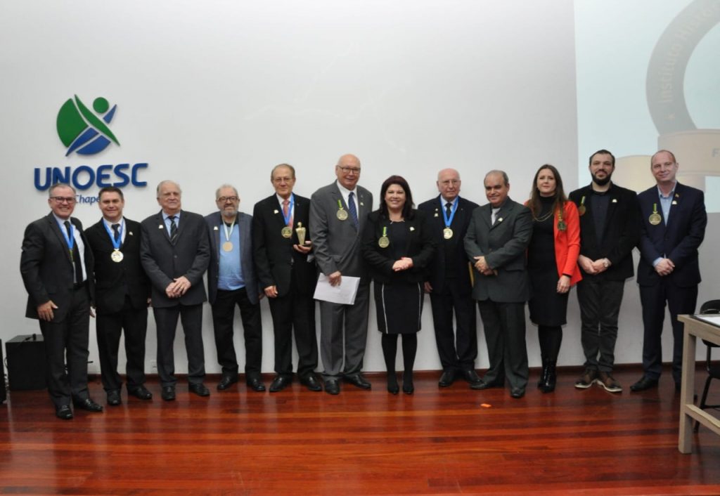 Celebrando seus quatro anos de fundação, o Instituto Histórico e Geográfico do Oeste Catarinense – IHGO, realizou solenidade que foi prestigiado por diversas autoridades e lideranças. Foi na última sexta-feira (02) no auditório da Unoesc Chapecó, com a seguinte programação: Posse de novos membros, entrega do troféu Marechal Bormann, homenagem dando nome à biblioteca e lançamento do hino da entidade.