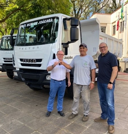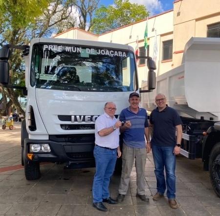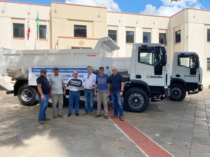 A Prefeitura de Joaçaba adquiriu mais dois caminhões caçamba com recursos próprios no valor de R$ 1.159.000,00, que serão utilizados nos serviços da Secretaria Municipal de Infraestrutura.