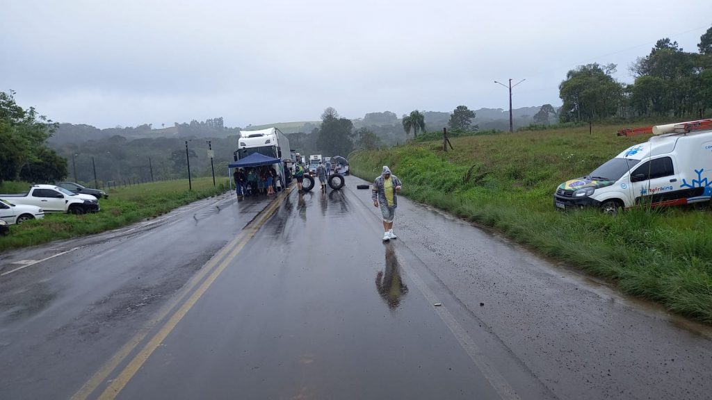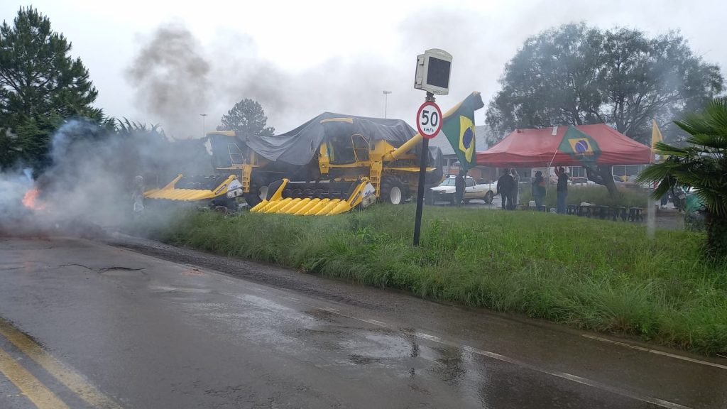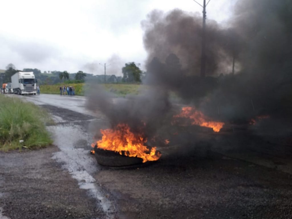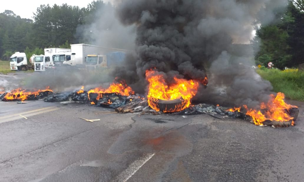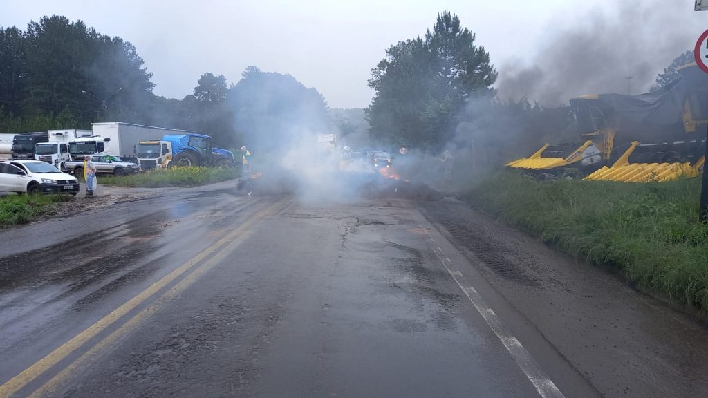 Um grupo de manifestantes fechou a BR-282 em Joaçaba em frente ao CPJ na manhã desta segunda-feira, por volta das 10h30. Pneus estão sendo queimados na pista e o trânsito está totalmente fechado. Filas enormes estão se formando nos dois sentidos e não há previsão de liberação. Cargas vivas e veículos da saúde estão sendo liberados. Além de caminhões, máquinas agrícolas fazem parte desta mobilização.