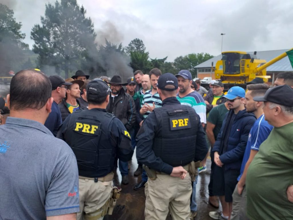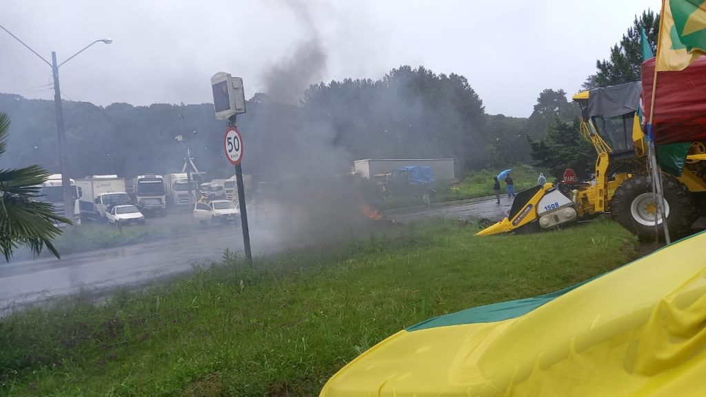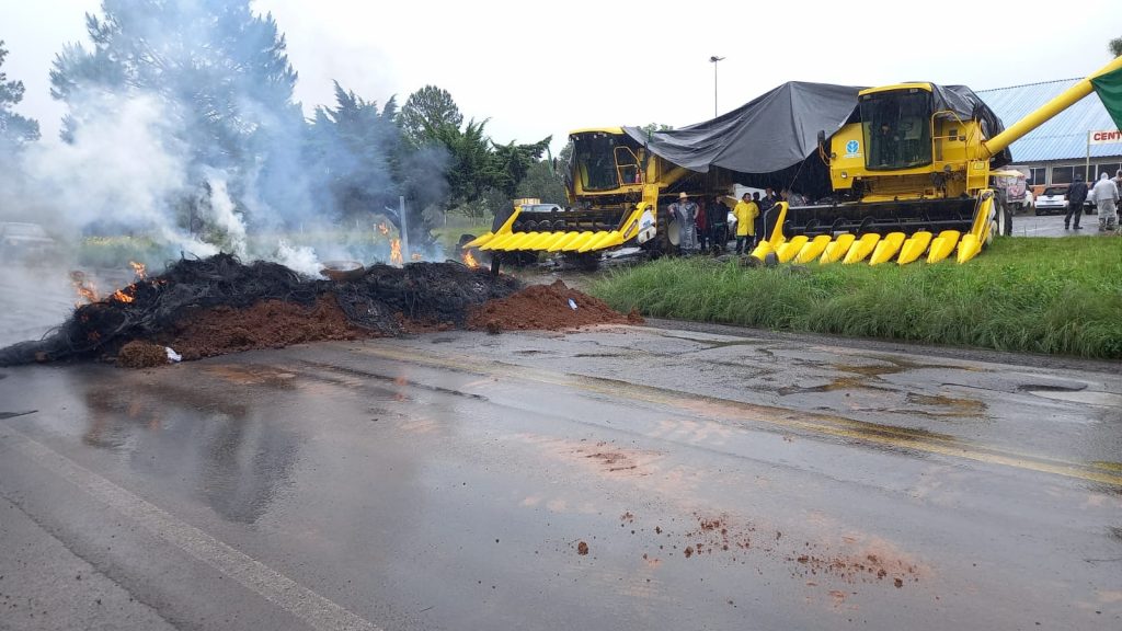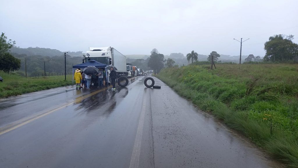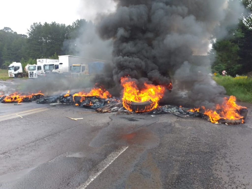 Um grupo de manifestantes fechou a BR-282 em Joaçaba em frente ao CPJ na manhã desta segunda-feira, por volta das 10h30. Pneus estão sendo queimados na pista e o trânsito está totalmente fechado. Filas enormes estão se formando nos dois sentidos e não há previsão de liberação. Cargas vivas e veículos da saúde estão sendo liberados. Além de caminhões, máquinas agrícolas fazem parte desta mobilização.