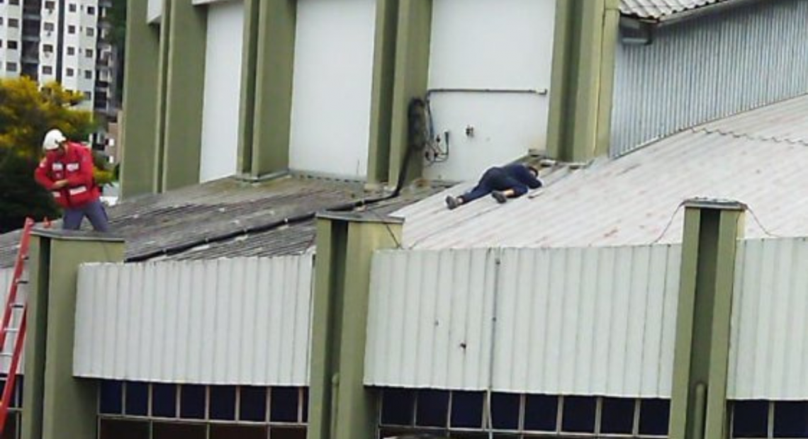Um fato mais que inusitado foi registrado na manhã deste domingo (30), em Concórdia. Moradores próximos à Igreja Matriz Nossa Senhora do Rosário ficaram assustados ao perceberem que no telhado da igreja havia um corpo.