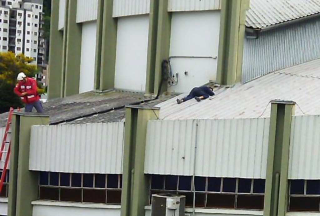 Chegando no local a equipe de resgate utilizou uma escada de aproximadamente seis metros para subir no telhado e constatou que um homem estava dormindo tranquilamente no local.