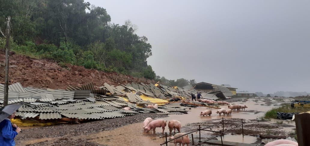 Um deslizamento de terra provocou grande prejuízo para uma família produtora de suínos no interior de Ibicaré. O fato ocorreu nesta terça-feira (11) na Linha do Cedro na propriedade da família Camin. O deslizamento atingiu a estrutura do local de confinamento dos animais que não resistiu e desabou. Diversos animais morreram. Uma máquina auxiliou na retirada dos escombros. O número de animais mortos ainda não foi confirmado. Nenhum morador ficou ferido.