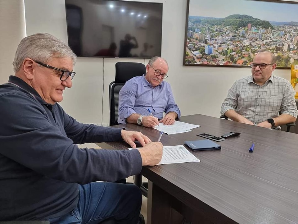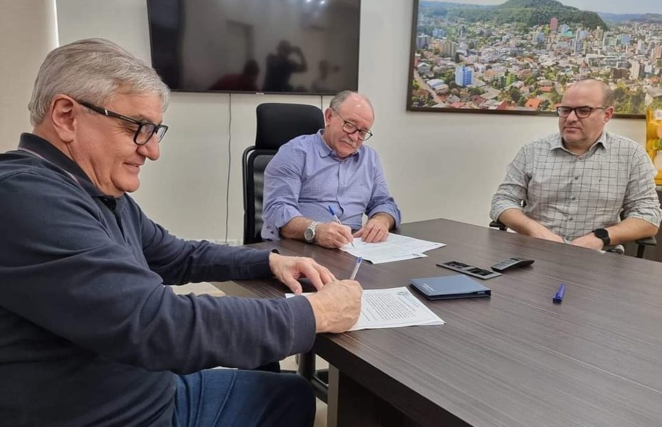Foi assinada nesta terça-feira (4), a Ordem de Serviço para o fornecimento dos materiais e equipamentos necessários para construção das cabeceiras das pontes das Linhas Ficagna, Duas casas e Nossa Senhoras das Graças. Estiveram presentes na solenidade, o prefeito Dioclésio Ragnini, secretários municipais, vereadores, representantes da AMMOC – Associação dos Municípios do Meio Oeste Catarinense e da empresa Construções Herval Ltda, que venceu a licitação e irá executar a obra.Para realizar a obra, o município investirá R$ 512.134,29, em recursos próprios do município. “A prefeitura irá construir as cabeceiras em concreto armado e a Defesa Civil Estadual vai doar e montar o kit de transposição, composto por estruturas de concreto pré-fabricadas, viabilizados através do Fundo Estadual da Defesa Civil de Santa Catarina (Fundec).