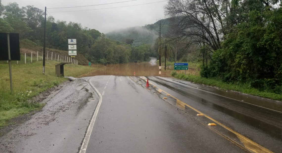 RODOVIAS: Situação na manhã desta quarta-feira Compartilhe O trânsito nas rodovias de nossa região continua interditado em alguns pontos. Entre eles no trecho entre Luzerna e Ibicaré e entre Ouro e Lacerdópolis. A água continua na pista.