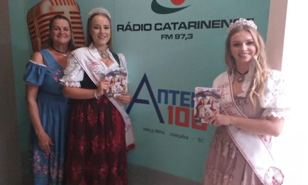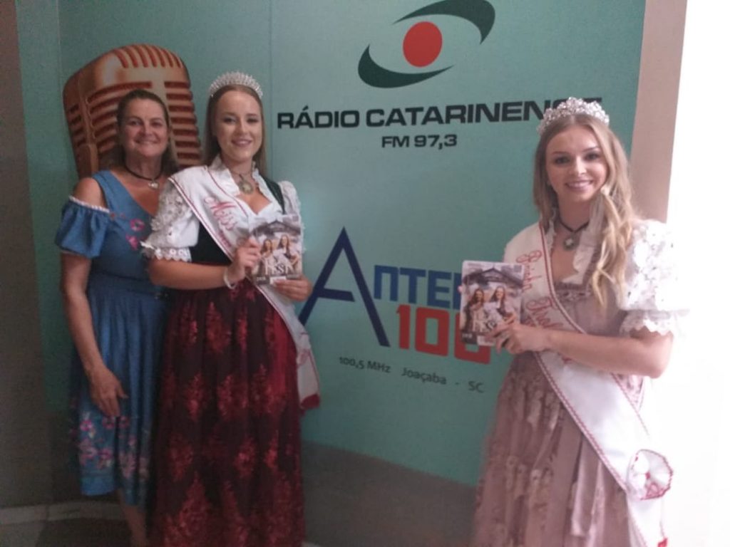 Nesta quarta-feira (05), a Rádio Catarinense FM recebeu a visita dos organizadores do evento e principalmente da realeza da festa, que tem Fernanda Dresch como rainha e Nicole Felder como Miss Turismo, além da secretária de Cultura e Turismo de Treze Tílias, Dirlei Barbieri.