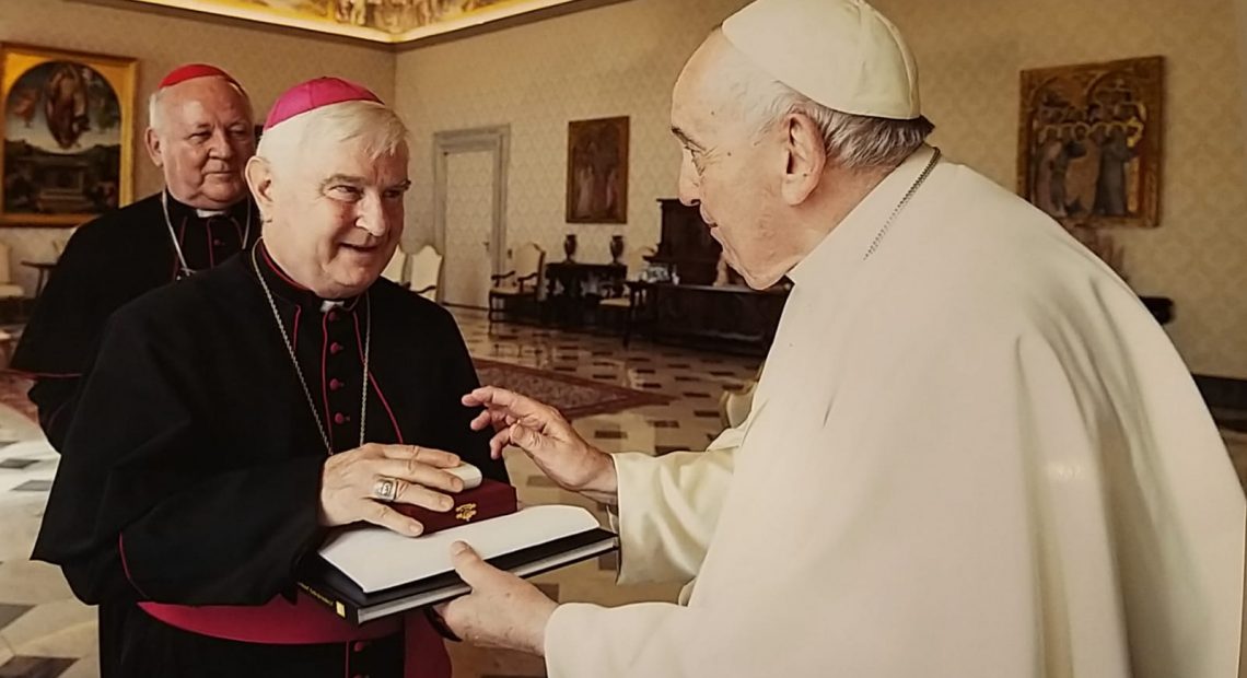 Registros do encontro do bispo diocesano de Joaçaba, Dom Frei Mário Marquez, com a Santidade Papa Francisco durante a Visita Ad Limina Apostolorum que aconteceu nos últimos dias e teve a participação de todos os bispos de Santa Catarina que compõem o Regional Sul IV da CNBB.Entre os presentes entregues, Dom Mário levou até o Papa Francisco um livro das Mães que oram pelos filhos, movimento que está se fortalecendo em todo o Brasil e teve a participação do nosso bispo desde a sua concepção quanto atuava como bispo auxiliar na Arquidiocese de Vitória/ES.