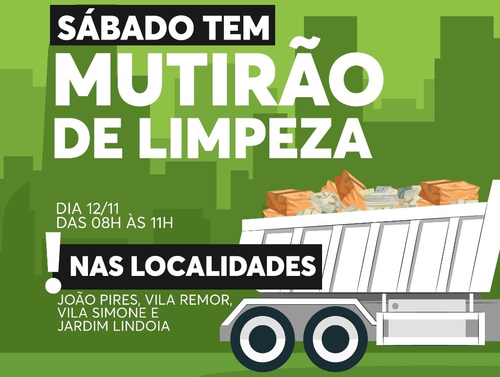 A prefeitura de Joaçaba, por meio da Secretaria de Infraestrutura e Agricultura, estará realizando no próximo sábado (12), das 8 às 11h, um mutirão de limpeza nos bairros João Pires, Vila Remor, Vila Simone e Jardim Lindoia.