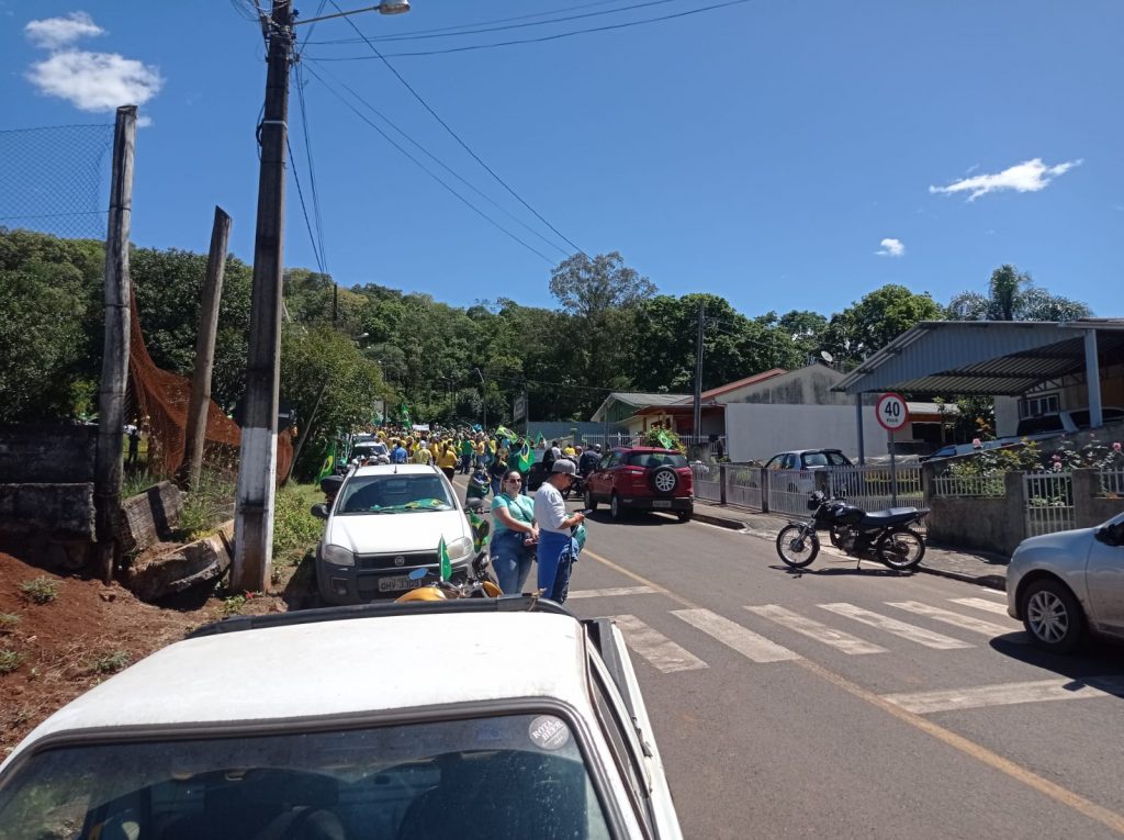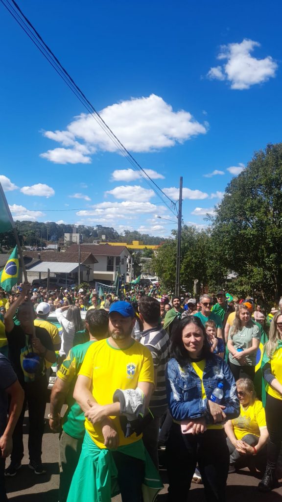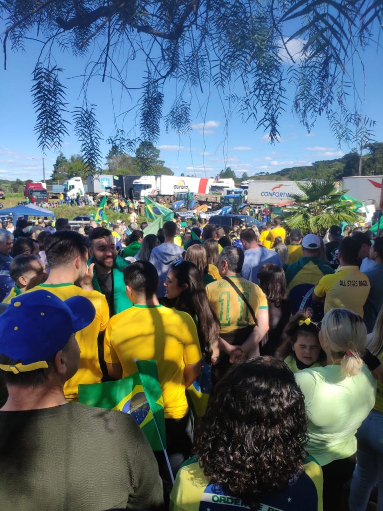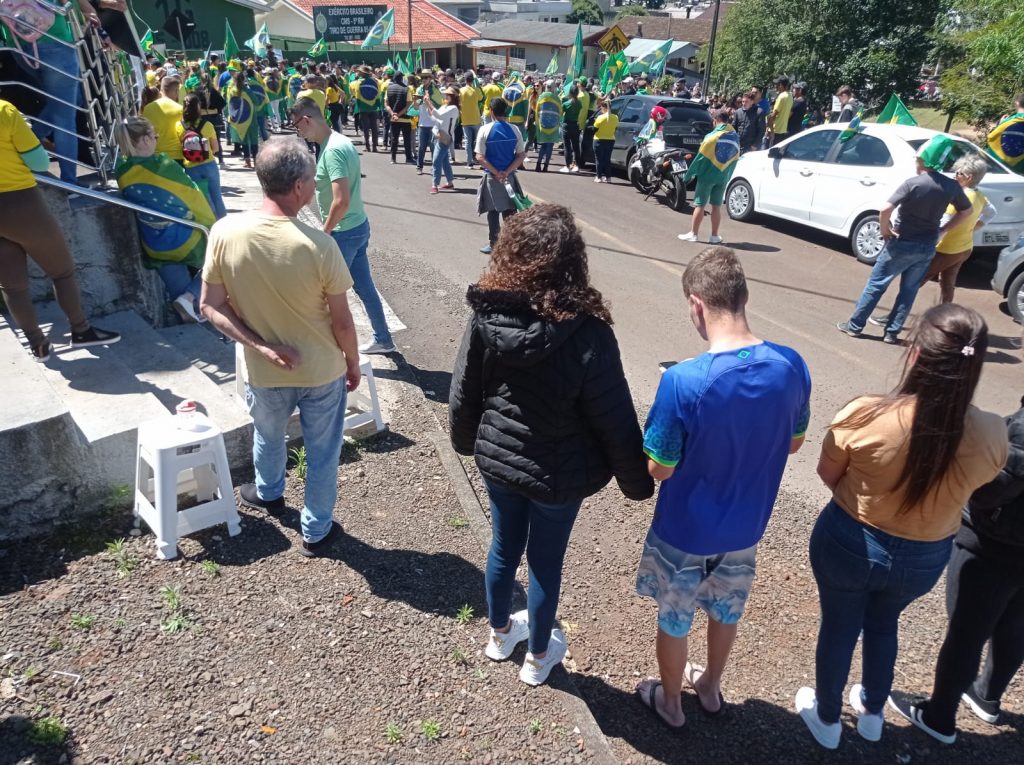 Logo após uma verdadeira multidão com bandeiras do Brasil e camisetas se concentraram nas margens da BR-282, somando forças ao grupo que iniciou o protesto. De forma pacífica eles cantaram o hino nacional e mostraram toda indignação aos motoristas que passavam pelo local.