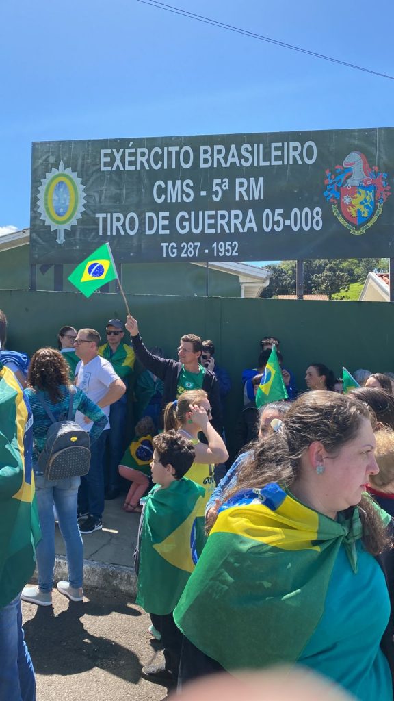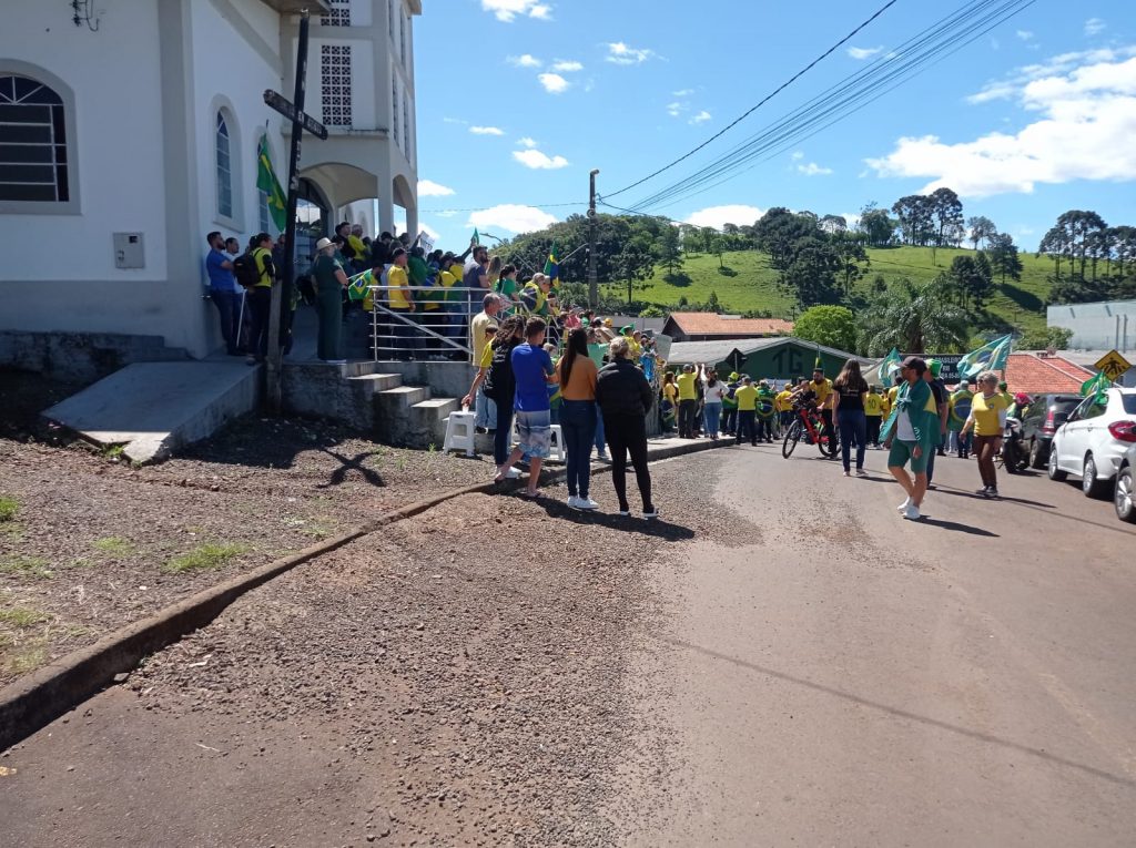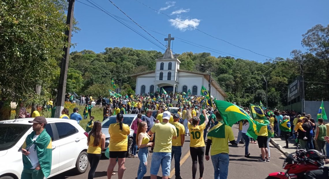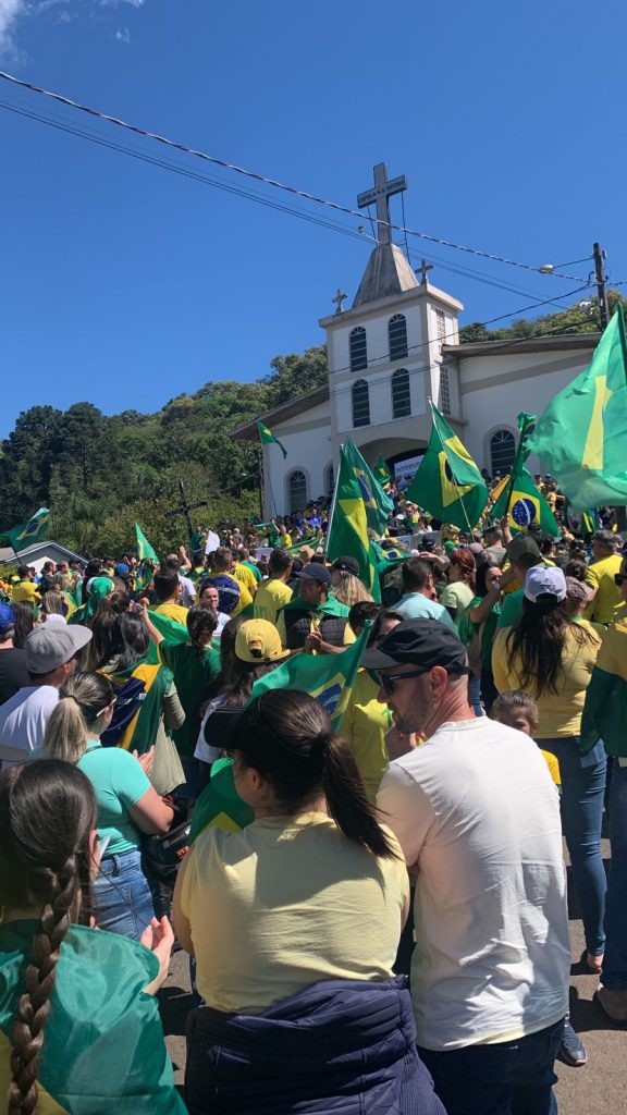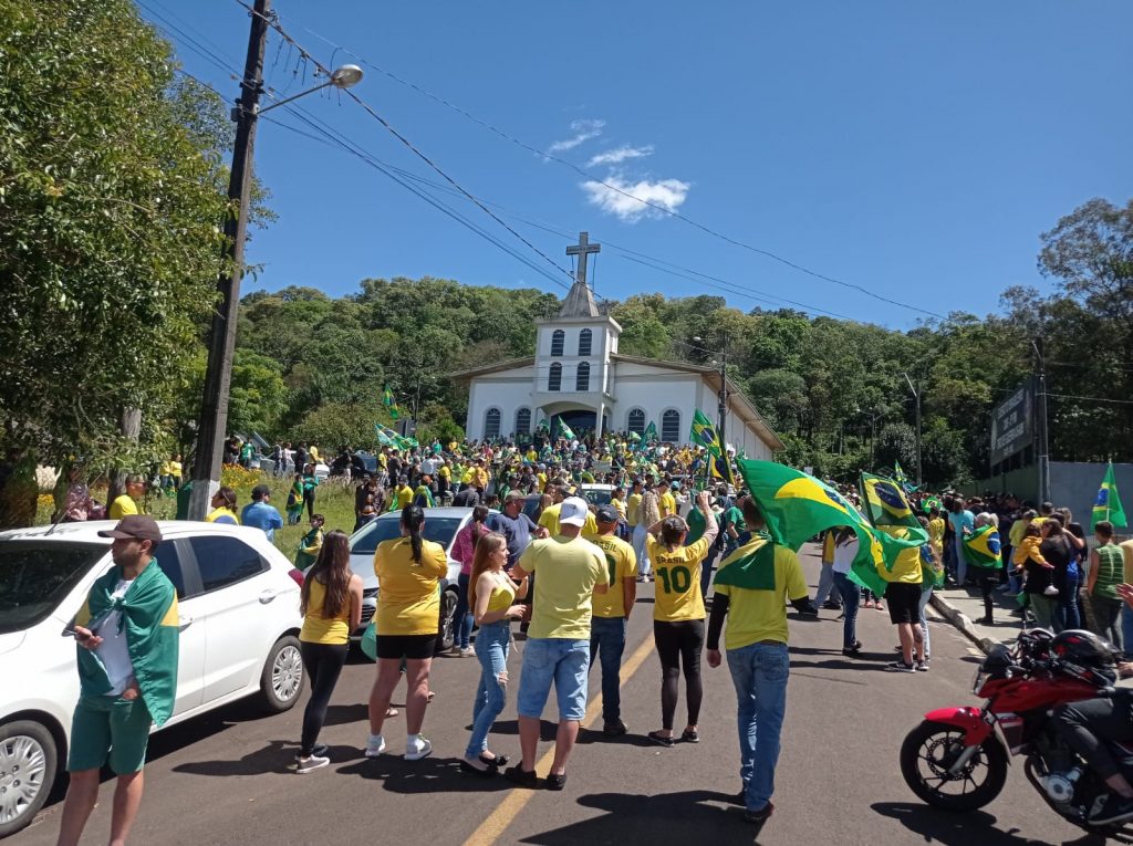 Logo após uma verdadeira multidão com bandeiras do Brasil e camisetas se concentraram nas margens da BR-282, somando forças ao grupo que iniciou o protesto. De forma pacífica eles cantaram o hino nacional e mostraram toda indignação aos motoristas que passavam pelo local.