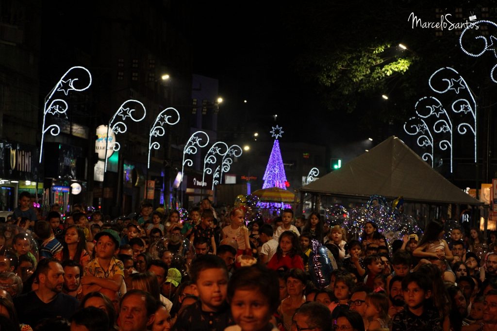 A magia e o encanto de Natal está de volta à Joaçaba. A Câmara de Dirigentes Lojistas (CDL), em parceria com a prefeitura, promoveu na noite desta sexta-feira (25) a abertura oficial do Natal Encantado. Um grande público, formado principalmente por famílias, lotou o trecho da avenida XV de Novembro até o edifício Pedrini para assistir o espetáculo natalino.