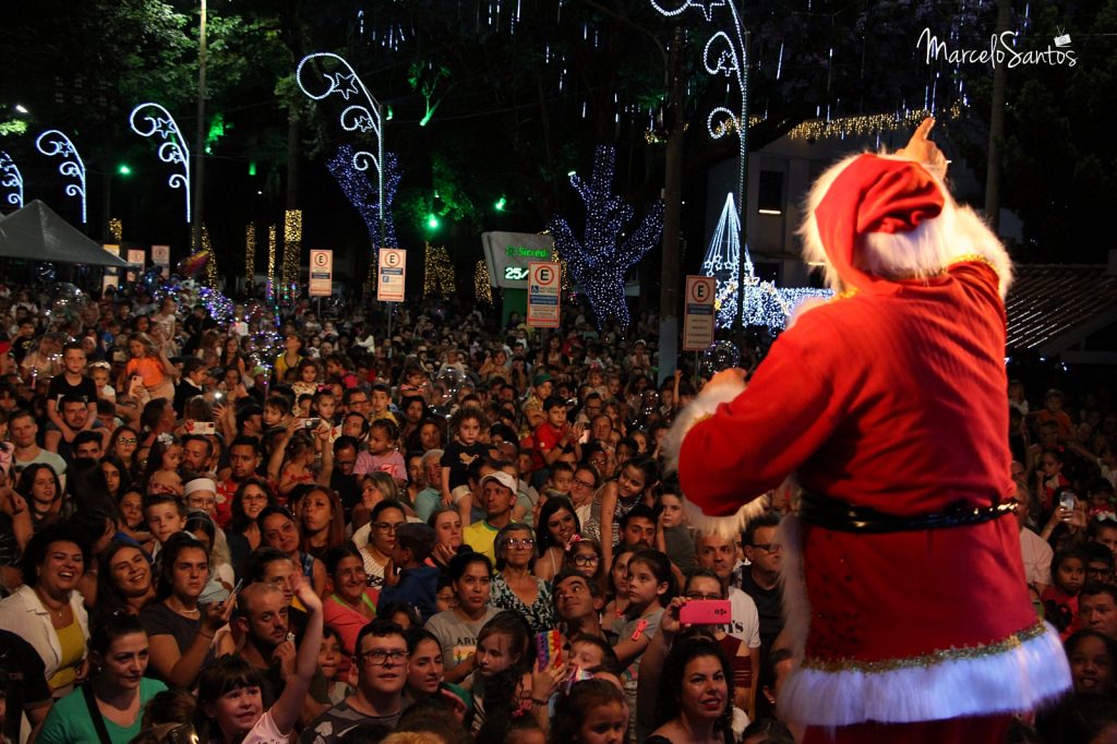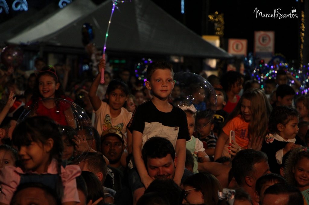 O Papai Noel acompanhado por seus assistentes chegou por volta das 21h num clima de muita magia e energia. As crianças com olhares atentos, como se estivessem hipnotizadas com a presença e a fala do bom velhinho, se divertiram e vibraram muito em diversos momentos. Papai Noel recebeu as chaves da cidade das mãos de Tânia Durigon, Secretária de Gestão Administrativa e Finanças da prefeitura e de Alessandra Favretto, presidente da CDL/Joaçaba.