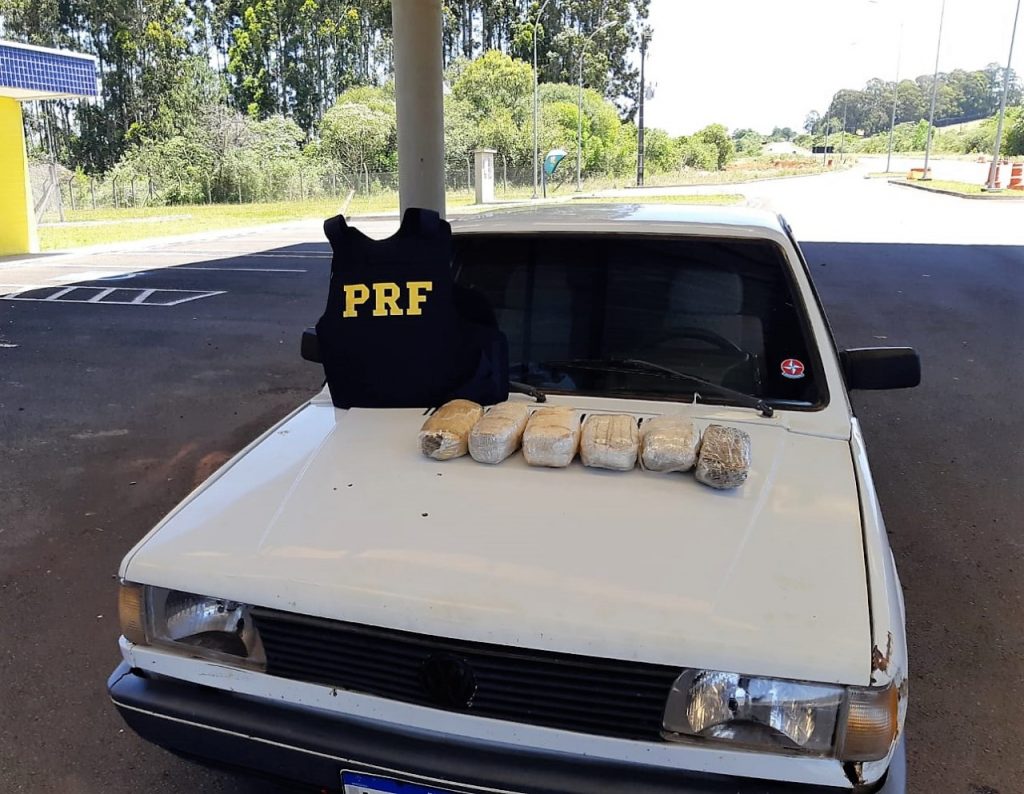 Em revista ao veículo, a PRF encontrou uma mochila contendo tabletes de maconha. Eles receberam voz de prisão e foram conduzidos à delegacia de Campos Novos.