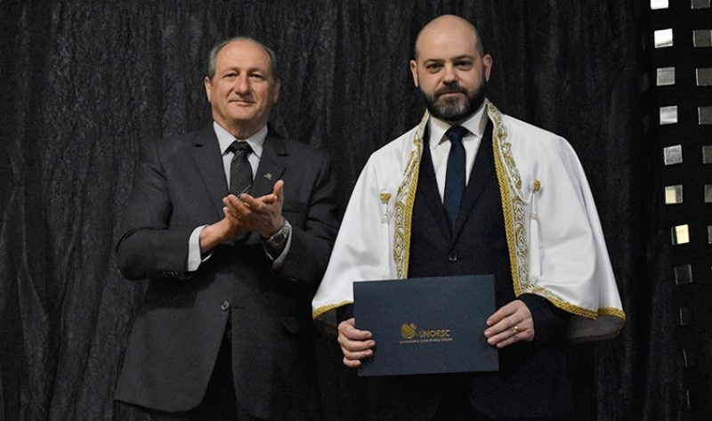 — O sentimento neste momento é de realização profissional. Tudo que adquiri na minha trajetória profissional, acadêmica e de estudos está sendo colocado à serviço da Instituição e espero corresponder à altura. A função de reitor não se faz sozinha e contarei com o apoio das equipes que aqui atuam. Agradeço ao professor Cimadon, aos conselhos da nossa Instituição, à Funoesc e seus colegiados, aos conselhos universitário e de administração, à assembleia geral que chancelou meu nome para esse cargo tão importante, aos professores, colaboradores, acadêmicos e comunidade que tem manifestado apoio para esse momento tão especial — comentou Ricardo.
