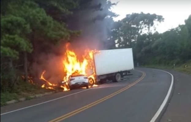 Uma colisão entre um carro e um caminhão, por volta das 6h da manhã desta sexta-feira (20), na SC-135, entre Tangará e Ibiam deixou um casal morto carbonizado. Eles ocupavam o veículo de passeio que colidiu contra o caminhão. Ainda não há maiores informações, sobre as causas do acidente e também sobre o estado de saúde do motorista do caminhão. O casal morava em Ibiam e estavam num Fiat/Siena.