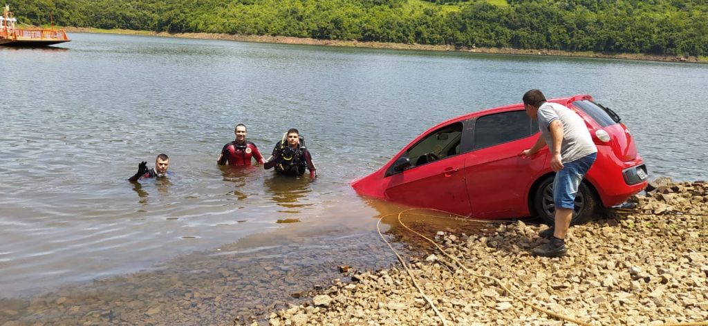 Bombeiros retiraram nesta sexta-feira (27) o Fiat/Palio que caiu no lago da Usina Hidrelétrica Machadinho na madrugada de domingo (22) no interior de Capinzal. Segundo o comandante da 3ª Cia, Tenente Robson Fermiano, o trabalho contou com a participação de 7 bombeiros, sendo três mergulhadores de Capinzal, Joaçaba e Catanduvas. Fermiano informou que foram cinco horas de operação, desde o início do deslocamento às 9 horas, até a remoção do veículo que contou com auxílio de um guincho por volta das 14 horas. O carro estava a uma profundidade de aproximadamente 10 metros.