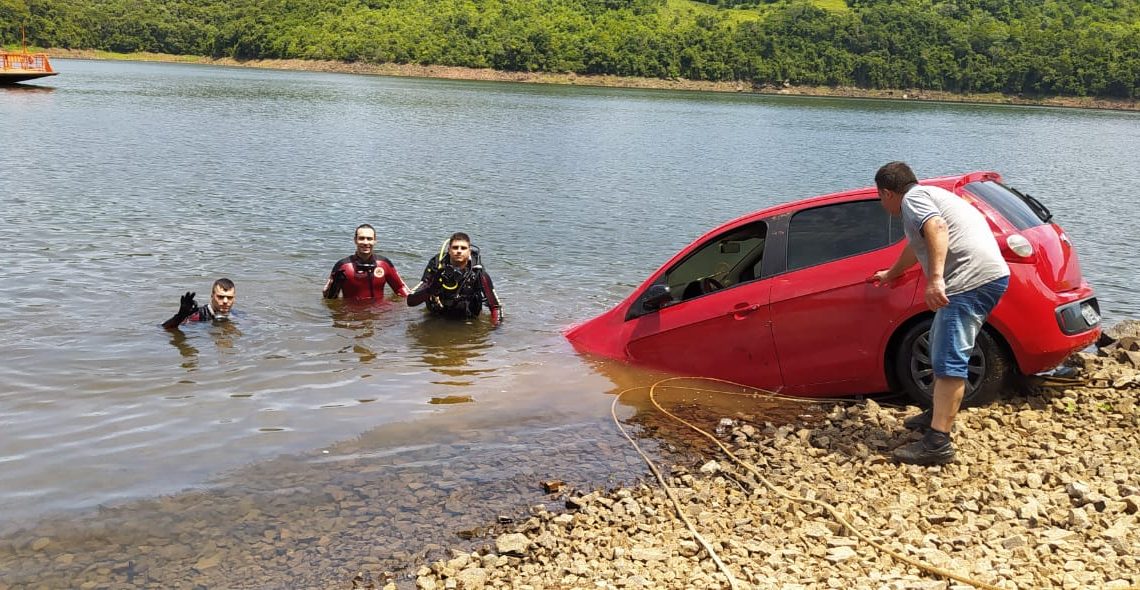 Retirado automóvel que caiu lago de Machadinho em Capinzal