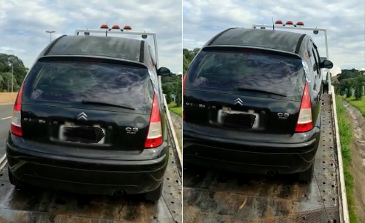O motorista disse que comprou o carro já sabendo dos débitos e que não pretendia transferir a propriedade para o seu nome. O C3 foi removido ao pátio conveniado e somente será liberado após a regularização.