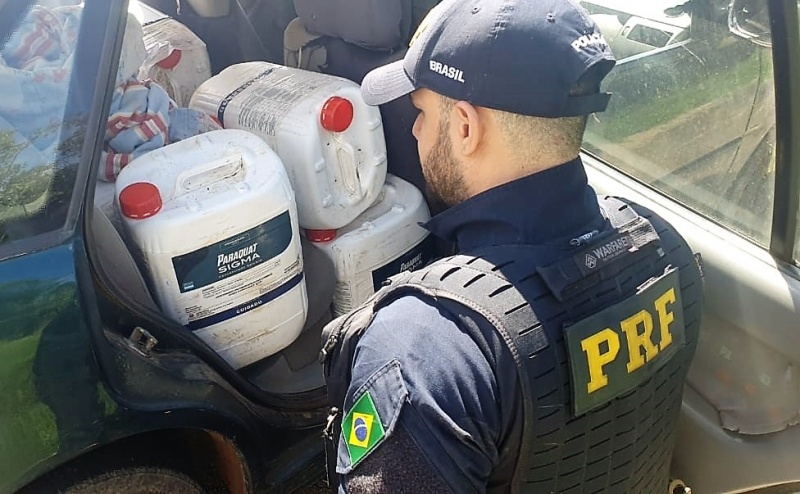 Policiais rodoviários federais apreenderam na manhã desta terça-feira (07), na BR-153 em Água Doce, 500 litros de agrotóxico importado ilegalmente da Argentina.